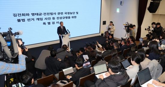 김건희와 명태균·건진법사 관련 국정농단 및 불법 선거 개입 사건 등 진상규명을 위한 특별검사팀 민중기 특별검사가 29일 서울 종로구 KT광화문빌딩 웨스트에 마련된 특별검사팀 브리핑룸에서 특검 수사 결과를 발표하고 있다. 2025.12.29 윤동주 기자