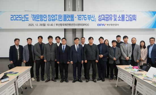 부산항만공사(사장 송상근)가 해운항만 창업지원 플랫폼 '1876 부산' 입주사와 올해 성과공유 간담회를 열었다.