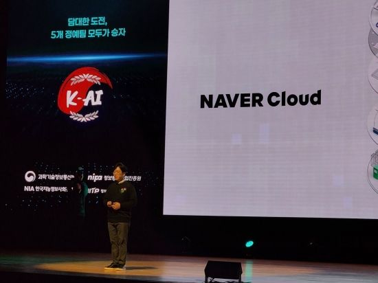 성낙호 네이버클라우드 하이퍼스케일 AI 기술총괄은 30일 서울 코엑스에서 열린 과학기술정보통신부 '독자 AI 파운데이션 모델' 프로젝트 1차 발표회에서 발표하고 있다. 사진=박유진 기자