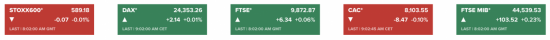 같은 시간 독일 DAX 지수는 0.01% 상승한 2만4353.26에 거래되고 있다. 프랑스 CAC 지수는 0.1% 하락한 8103.55에 거래됐다.