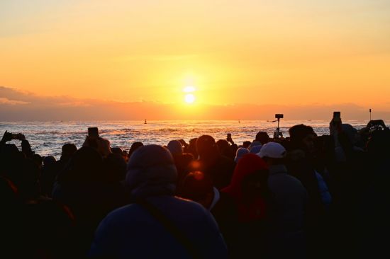 영하의 추위 속에서도 백사장을 가득 메운 시민과 관광객들은 수평선 너머로 붉은 해가 고개를 내밀자 일제히 환호성을 터뜨렸다.
