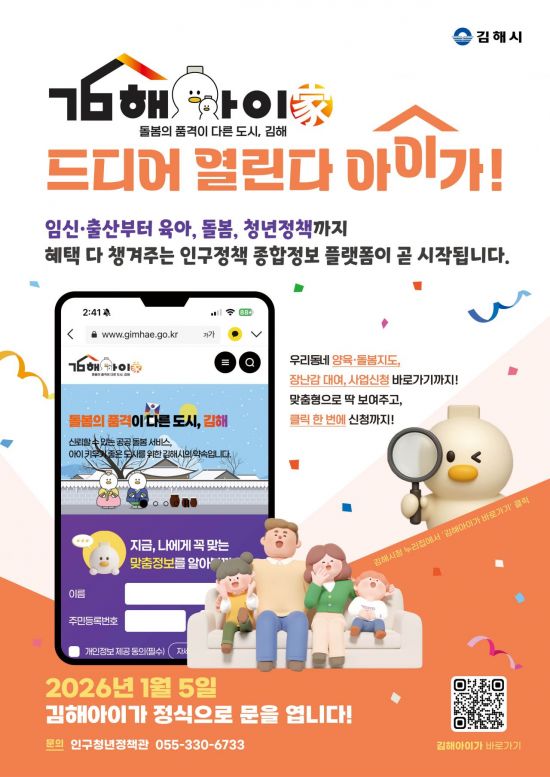 지난해 경남 김해시의 최고의 인구시책으로 선정된 인구정책 종합정보 플랫폼 '김해아이가(家)'가 오는 5일 정식 운영된다.