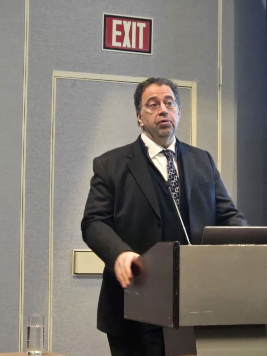 다론 아제모을루 미국 매사추세츠공과대학교(MIT) 경제학과 교수가 4일(현지시간) 미국 펜실베이니아주 필라델피아에서 열린 '전미경제학회 연례총회(ASSA) 2026' 강연에서 발언하고 있다. 필라델피아=권해영 특파원