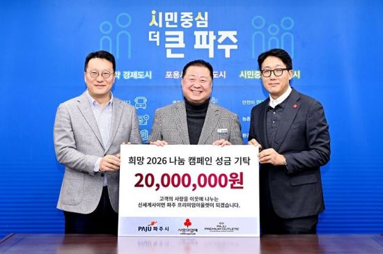 김경일 파주시장은 "신세계사이먼 파주 프리미엄 아울렛의 따뜻한 성금에 감사드리며, 관내 어려운 이웃들이 새해를 시작하는 데 큰 힘이 될 것"이라며 "전달받은 성금은 도움이 필요한 곳에 소중히 사용하겠다"고 전했다.