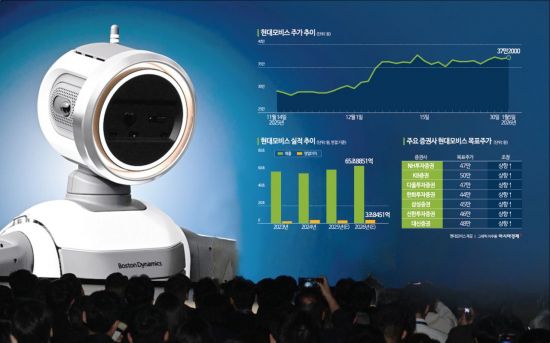 현대모비스의 이러한 변화에 증권가는 일제히 목표주가를 높이고 있다. KB증권은 현대모비스를 자동차 업종 '탑픽(Top Pick)'으로 꼽으며 목표주가를 50만원으로 상향 조정했다. 이는 로봇 사업의 가치를 반영한 수치로 12개월 예상 주가수익비율(PER) 11.1배 수준이다. 한화투자증권과 NH투자증권 역시 각각 44만원과 47만원으로 목표가를 높여 잡으며 밸류에이션 리레이팅이 진행 중임을 강조했다.