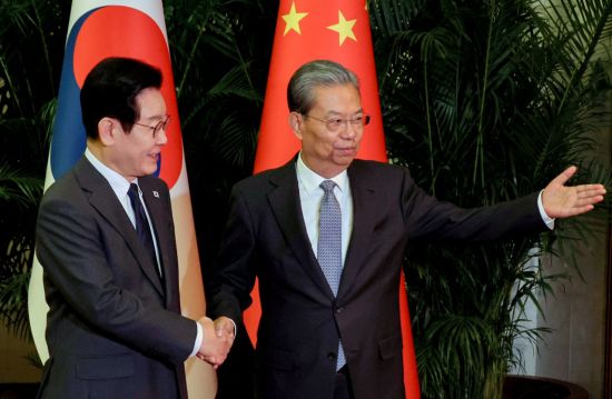 이재명 대통령이 6일 오전 중국 베이징 인민대회당에서 자오러지 전국인민대표대회 상무위원장을 접견하고 한·중 전략적 협력 동반자 관계의 성숙한 발전을 위해 의회 차원의 역할과 지원을 요청했다. 자오 상무위원장은 한중관계가 정상 궤도로 복귀해 새로운 국면을 맞이했다며 소통과 협력을 강화하자고 화답했다.