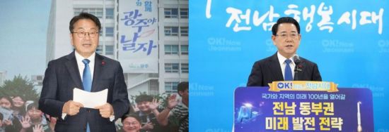 강 시장과 김 지사의 실질적 경쟁자로 분류되는 민형배(광주광역시장 선거 후보)·주철현(전남도지사 선거 후보) 등 국회의원들은 행정통합에 대해선 원칙적으로 찬성하면서도 '2030년 전후 통합' 필요성을 제기한 것도 같은 맥락이다.