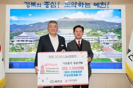 한편 예천군은 '희망 2026 나눔 캠페인'을 통해 민·관이 함께하는 나눔 문화를 확산시키고 있으며, 지역 기업과 주민들의 자발적인 참여가 이어지면서 연말연시 공동체 연대의 모범 사례로 평가받고 있다.