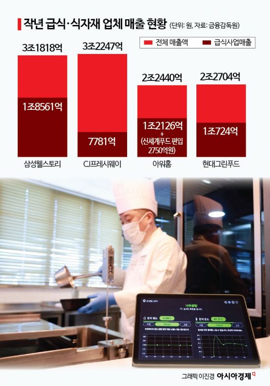 급식시장은 기존 '5강 체제'(삼성·현대·아워홈·CJ·신세계)에서 신세계푸드 급식사업부 매각 이후 '4강 체제'(삼성·아워홈·현대·CJ)로 재편됐다. 여기에 동원, 풀무원 등 후발 주자들까지 가세하며 경쟁은 더 치열해지는 양상이다. 아워홈은 2030년까지 매출 5조원, 영업이익 3000억원 달성을 목표로 하고 있다. 올해 신규 급식 입찰 물량만 6000억원에 이를 것으로 전망된다.