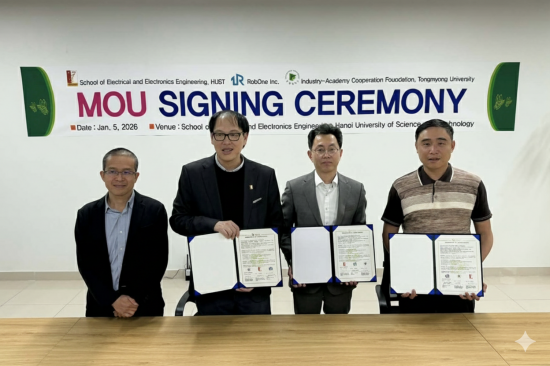 동명대학교 산학협력단(단장 조현태, 컴퓨터공학과 교수)은 지난 5일 베트남 하노이에 위치한 하노이과학기술대학교(HUST)에서 하노이과학기술대 전기전자공학부·로보원과 함께 차세대 로봇 시스템과 인공지능 기술 개발과 활성화를 위한 업무협약을 체결했다.