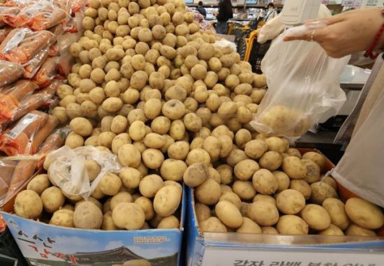 한국농수산식품유통공사(aT)의 농산물가격정보(KAMIS)에 따르면 지난 7일 기준 감자 중도매인 판매가격은 20kg 기준 6만4300원으로 전년(4만6135원) 대비 39.37% 상승했다. 전월(4만8426원)과 비교해도 32.78% 오른 수치다.