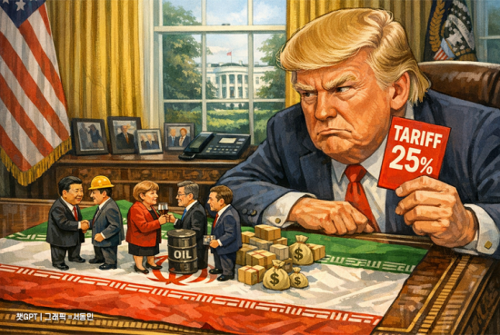 이란에서 반정부 시위가 격화하는 가운데 도널드 트럼프 미국 대통령이 12일(현지시간) 이란과 거래하는 모든 국가에 미국과 거래 시 25% 관세를 부과할 것이라고 경고했다.