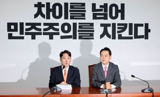 [포토] 장동혁-이준석, '공천헌금·통일교 특검 연대'