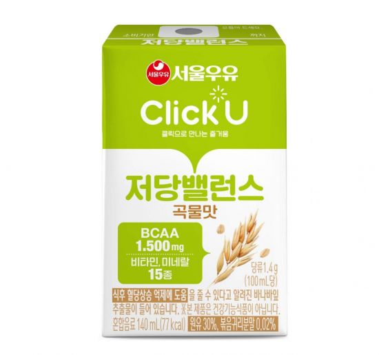 서울우유협동조합의 온라인 브랜드 클릭유가 하루에 필요한 영양소를 간편하게 보충할 수 있는 '클릭유 저당밸런스 곡물맛'을 출시했다고 13일 밝혔다.