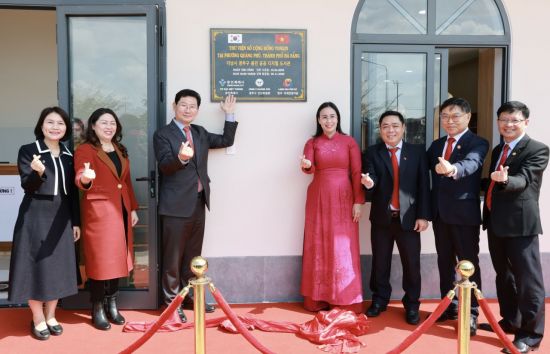 이상일 용인시장 등 용인시 대표단은 13일 베트남 다낭시 광푸구의 국제연꽃마을 복지타운에서 개최된 '다낭시 광푸구 용인 공공 디지털도서관' 준공식을 개최했다. 준공식에는 시 대표단과 응우옌 티 안 티 다낭시 부인민위원장, 후인 응옥 바 광푸구 인민위원장, 조당호 국제연꽃마을 회장, 다낭 총영사관 관계자, 현지 주민과 학생 등 140여 명이 참석했다.
