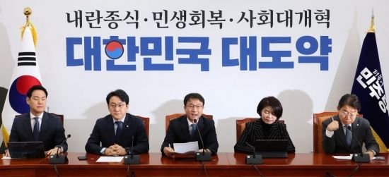 한병도 더불어민주당 원내대표가 15일 국회에서 열린 정책조정회의에서 발언하고 있다.