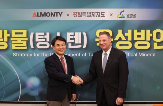 김진태 강원특별자치도지사는 15일 ㈜알몬티 인더스트리 최고운영책임자(COO)인 스티븐 알렌(Steven Allen), 최명서 영월군수 등과 함께 영월 상동 텅스텐 광산을 중심으로 한 핵심광물(텅스텐) 육성 방안을 발표했다.