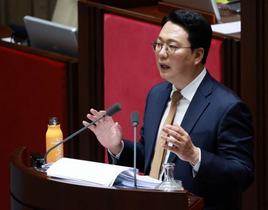 천하람 개혁신당 원내대표가 16일 국회에서 열린 본회의에서 '윤석열ㆍ김건희에 의한 내란ㆍ외환 및 국정농단 행위의 진상규명을 위한 특별검사 임명 등에 관한 법률안'에 대해 무제한 토론(필리버스터)을 하고 있다.