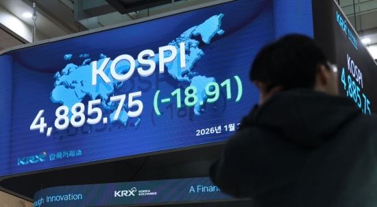 20일 오천피를 앞두고 코스피 지수가 13거래일만에 하락하며 전 거래일 대비 0.39% 내린 4,885.75으로장을 마감했다.