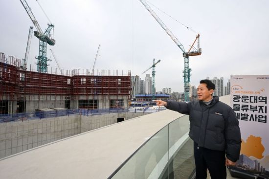 오세훈 서울시장이 12일 서울 노원구 월계동 광운대역 물류부지 공사현장을 찾아 HDC현대산업개발이 시공중인 'SEOUL ONE' 현장 시찰을 하고 있다. 2026.01.12 윤동주 기자