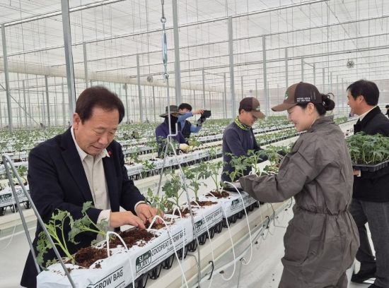 임대형 스마트팜단지에 입주한 청년 농업인들이 첫 토마토 정식을 진행하며 '농업 대전환'의 시작을 현장에서 알렸다.