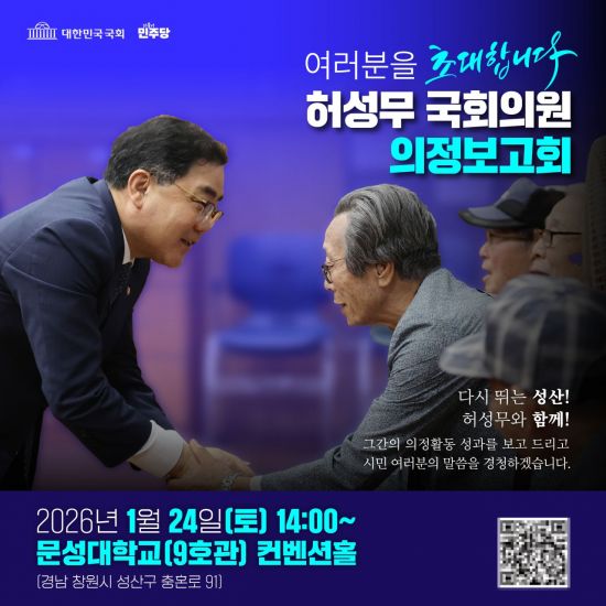 이번 의정보고회는 ' 다시 뛰는 성산 ! 허성무와 함께 !' 라는 슬로건 아래 개최되며, 허성무 의원이 지난 1년간의 성과를 주민들에게 직접 보고하고 향후 성산구의 발전 비전을 공유하기 위해 마련됐다.
