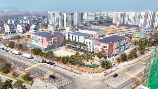 수원 규장초교는 유·초·중 통합 신설 학교로 미래사회와 학교 교육체제 변화에 대응하는 미래형 학교로 설계됐다. 주민도 사용할 수 있는 복합화 시설을 함께 연계한 혁신적인 공간이다.