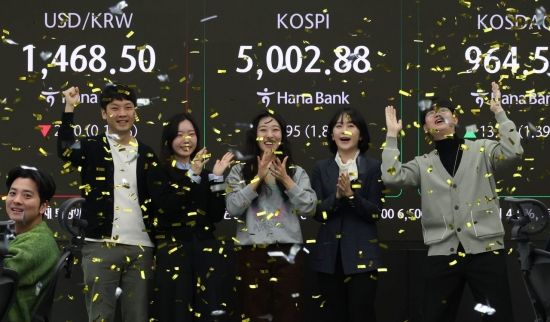 [포토] 사상 첫 5000 돌파한 코스피