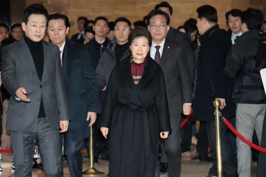 박근혜 전 대통령이 22일 국회 로텐더홀에서 통일교·공천헌금 '쌍특검' 수용을 요구하며 8일째 단식 중인 국민의힘 장동혁 대표를 찾고 있다.