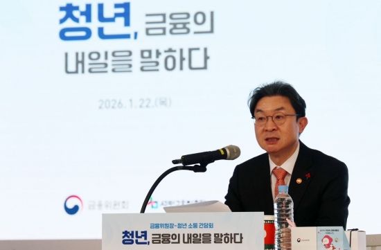 이억원 금융위원회 위원장이 22일 서울 중구 온드림 소사이어티에서 열린 금융위원장-청년 소통간담회 '청년, 금융의 내일을 말하다'에 참석, 발언을 하고 있다.