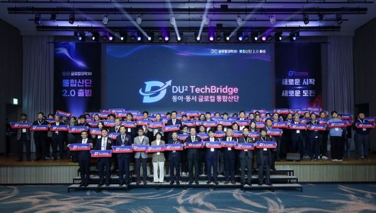 행사는 1부 '비전 선포'와 2부 '성과 공유'로 나뉘어 진행됐다. 1부에서는 기업과 연구자를 연결하는 'AI 기반 통합기술플랫폼' 시연과 함께 '통합산단 2.0, DU² TechBridge' 출범 선언이 이뤄졌다. DU² TechBridge는 동아대와 동서대 구성원이 참여한 공모를 통해 명칭과 로고가 선정됐다.