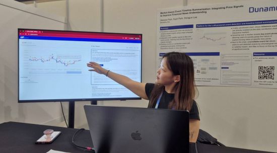 박희수 두나무 머신러닝팀 연구원은 AAAI 데모트랙에서 '시장 반응형 이벤트 타임라인 요약: 가격 신호 통합을 통한 금융 뉴스 이해도 향상(원문: Market-Aware Event Timeline Summarization: Integrating Price Signals to Improve Financial News Understanding)' 논문을 발표하고 두나무가 자체 개발한 시스템을 직접 시연했다.