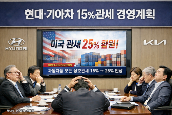 나이스신용평가에 따르면 대미 자동차 수출 관세율이 25%일 때 현대차그룹의 관세 비용은 8조4000억원으로 추산됐다. 관세가 15%로 내려가면 현대차그룹의 관세 비용은 5조3000억원으로 3조1000억원 줄어들 것으로 봤다. 결국 현대차그룹 입장에서는 관세가 15%에서 25%로 오르면 3조1000억원의 부담을 떠안는 셈이다.