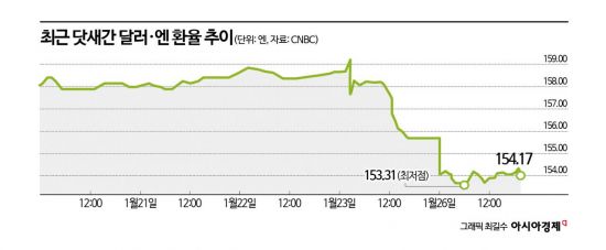 니혼게이자이신문(닛케이)에 따르면, 26일 외환시장에서 달러·엔 환율은 달러당 153엔대 초반까지 하락했다. 지난 23일 159엔대였던 환율이 불과 사흘 만에 6엔가량 낮아진 셈이다. 환율의 하락은 곧 엔화 강세이자, 달러 약세를 의미한다. 유로화 대비 달러 환율은 1.1907달러까지 치솟아 달러화 가치가 4개월 만에 최저치로 떨어지기도 했다. 달러는 영국 파운드화 대비로도 약세를 보였다.
