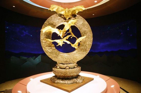 황금박쥐상은 은으로 된 원형 구조물 위에 순금으로 만든 6마리의 황금박쥐가 날개를 펼치고 날아오르는 모습을 형상화했다. 제작 당시 순금 가격 기준 재료비는 약 27억 원 수준이었다. 아시아경제DB