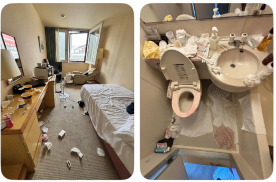 그는 "객실은 믿을 수 없을 정도로 엉망이었다"며 "어떻게 이런 상태로 지냈는지 이해할 수 없다"고 썼다.