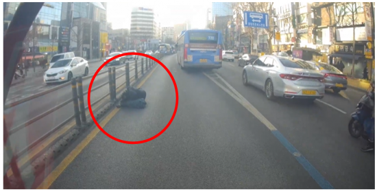 버스 기사인 작성자 A씨는 "오늘 오후에 있었던 일이다. 버스를 운행 중이었는데, 종로에서 갑자기 차가 안 가서 뭔가 했는데 앞 차량이 빠지고 보니 사람이 누워 있더라"고 운을 뗐다.