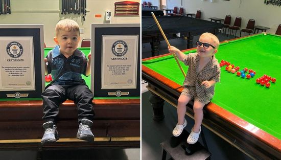 영국의 두 살배기 당구 신동이 스누커 종목에서 고난도 기술을 성공시키며 기네스 세계기록 2관왕에 올랐다.