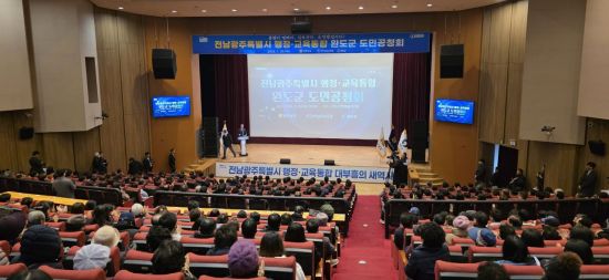 29일 오후 광주·전남 행정통합의 향방을 설명하는 해남·완도·진도 권역 공청회 현장은 기대와 우려가 교차했다 지역 소멸의 벼랑 끝에 선 서남권 주민들의 기대와 '생존'에 대한 우려, 날 선 질문이 가득했다. 이날 공청회는 행정적 당위성을 설파하는 '담론의 장'이자, 주민들의 절박한 목소리가 터져 나온 '현장'이었다.