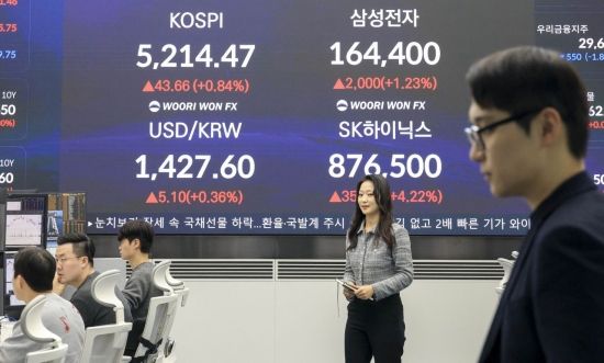 코스피가 사상 처음으로 장중 5200선을 돌파한 29일 서울 중구 우리은행 본점 딜링룸에서 딜러들이 업무를 보고 있다. 이날 원달러 환율은 전 거래일 대비 7.1원 오른 1429.60원에 거래를 시작 했다. 2026.1.29 강진형 기자