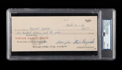 이 경매에서 애플 명의로 개설된 최초의 은행 계좌에서 발행된 1번 수표가 240만9886달러(약 35억원)에 팔렸다. 이는 공개 경매에 나온 서명 수표 가운데 최고가 기록으로 알려졌다.