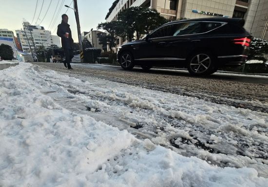수도권 일대에 전날 내린 폭설이 밤새 영하권 추위에 서울 도심 도로 곳곳이 얼어 붙은 5일 제설작업이 미흡한 서울 중구의 한 이면도로를 지나는 시민들이 조심스럽게 발걸음을 옮기고 있다. 2025.12.05 윤동주 기자