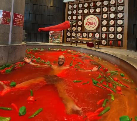 4일(현지시간) NDTV 등 외신은 "중국 하얼빈에 있는 칠리 페퍼스 훠궈 스파를 방문한 영상 블로거 조던 에그버트가 이색적인 스파 체험을 소개했다"고 전했다.