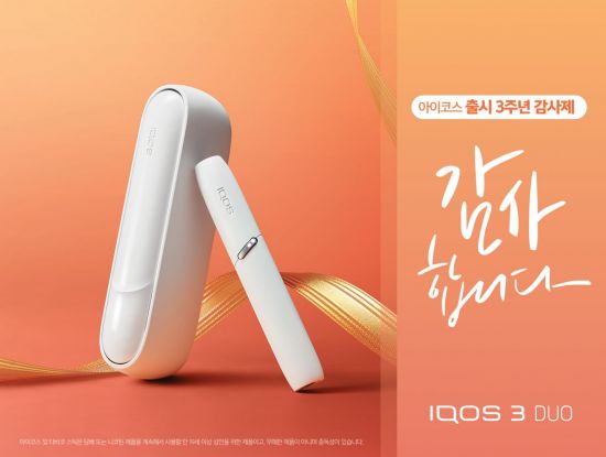 또, 오프라인 고객에게 적용되는 혜택도 감사제와 별도로 계속된다. 기존 고객이 지정된 공식 오프라인 매장을 방문해 사용하던 아이코스(아이코스 2.4P, 아이코스 3, 아이코스 3 멀티)를 반납하면, 별도의 공지가 있을 때까지 최신형 기기인 ‘아이코스3 듀오(IQOS 3 DUO)’를 6만9000원에 구매할 수 있다.