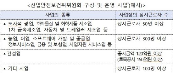 [세종=아시아경제 문채석 기자] 중대재해처벌법 시행을 14일 앞두고 정부가 법 적용 대상인 근로자 50인 기업이 활용하도록 '산업안전보건위원회 구성·운영 매뉴얼'을 배포한다고 13일 밝혔다. 위원회는 산업안전보건법상 50인, 100인 또는 300인 이상 사업장이라면 의무적으로 설치해야 하는 기구다.