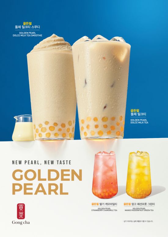 신메뉴는 ‘골든펄 돌체 밀크티’, ‘골든펄 돌체 밀크티 스무디’, ‘골든펄 딸기 캐모마일티’, ‘골든펄 망고 패션프룻 그린티’ 총 4종이다. 공차 글로벌 공동 출시 제품으로 기획돼 한국에서 제일 먼저 출시된다.