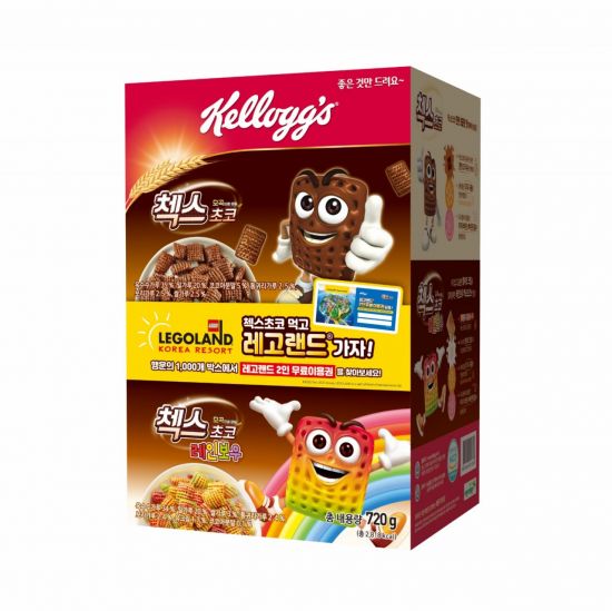 첵스초코 레고랜드 기획팩은 진한 초콜릿 맛의 ‘오곡으로 만든 첵스초코’ 1팩과 부드러운 화이트 크림맛의 ‘첵스츠코 레인보우’ 1팩, 레고랜드 이벤트 쿠폰 1장으로 구성됐다. 오곡으로 만든 첵스초코는 농심켈로그의 대표적인 초콜릿맛 시리얼로 우유와 만나면 진한 초코우유로 변하는 것이 특징이며, 첵스초코 레인보우는 빨강·오렌지·노랑·초록 4가지 색이 화려한 무지개를 연상시키며 첵스초코 베이스에 유크림을 코팅해 더욱 부드럽고 달콤한 화이트 크림맛을 구현한 제품이다.