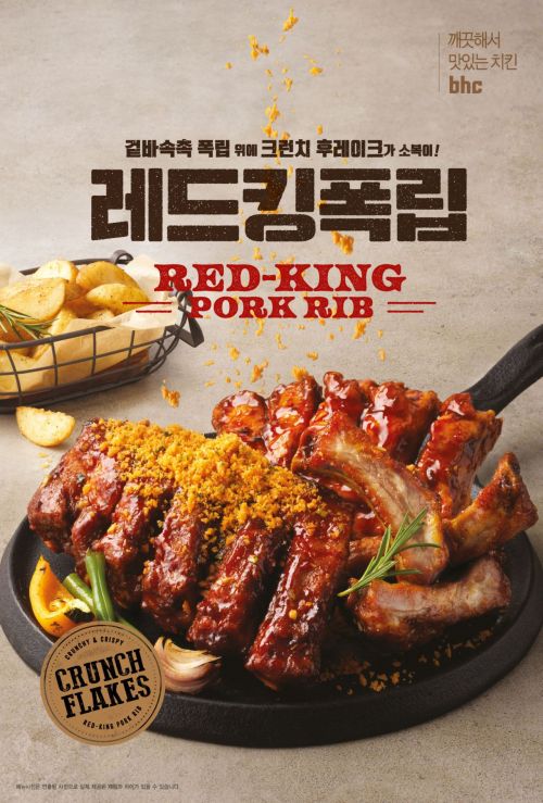 레드킹폭립은 bhc치킨의 제품 기술력을 폭립(돼지고기 등갈비를 양념해 오븐에 구운 요리)에 적용한 이색 후라잉 메뉴로, 오븐 구이한 폭립을 튀겨내 레드킹 소스와 버무린 후 크런치 후레이크를 토핑해 매콤함과 바삭한 풍미가 어우러지는 메뉴다. 특히 폭립의 살코기 부분은 bhc치킨만의 배터믹스로 파우더링 한 후 튀겨내 기존 오븐식으로 조리한 폭립 대비 겉바속촉(겉은 바삭하고 속은 부드럽고 촉촉한)의 식감이 특징이다.