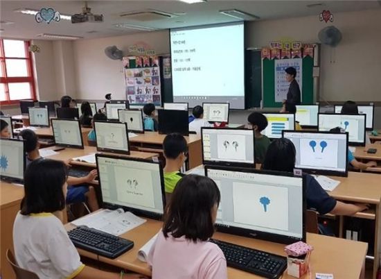 방학 중 방과후학교 컴퓨터 수업을 받고 있는 은명초 학생들.