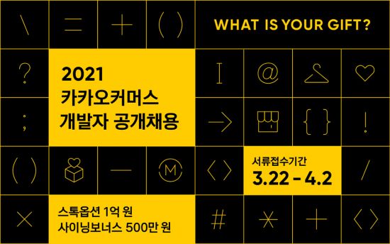 카카오커머스는 이번 공채를 통해 입사하는 합격자에게 1억원 상당의 주식매수선택권(스톡옵션)을 지급한다. 경력 개발자의 경우 추가 보너스 500만원을 준다.